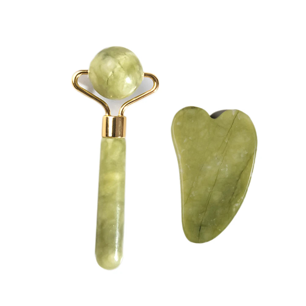 Natural Jade Face Roller Gua Sha Scraper Set Masssager